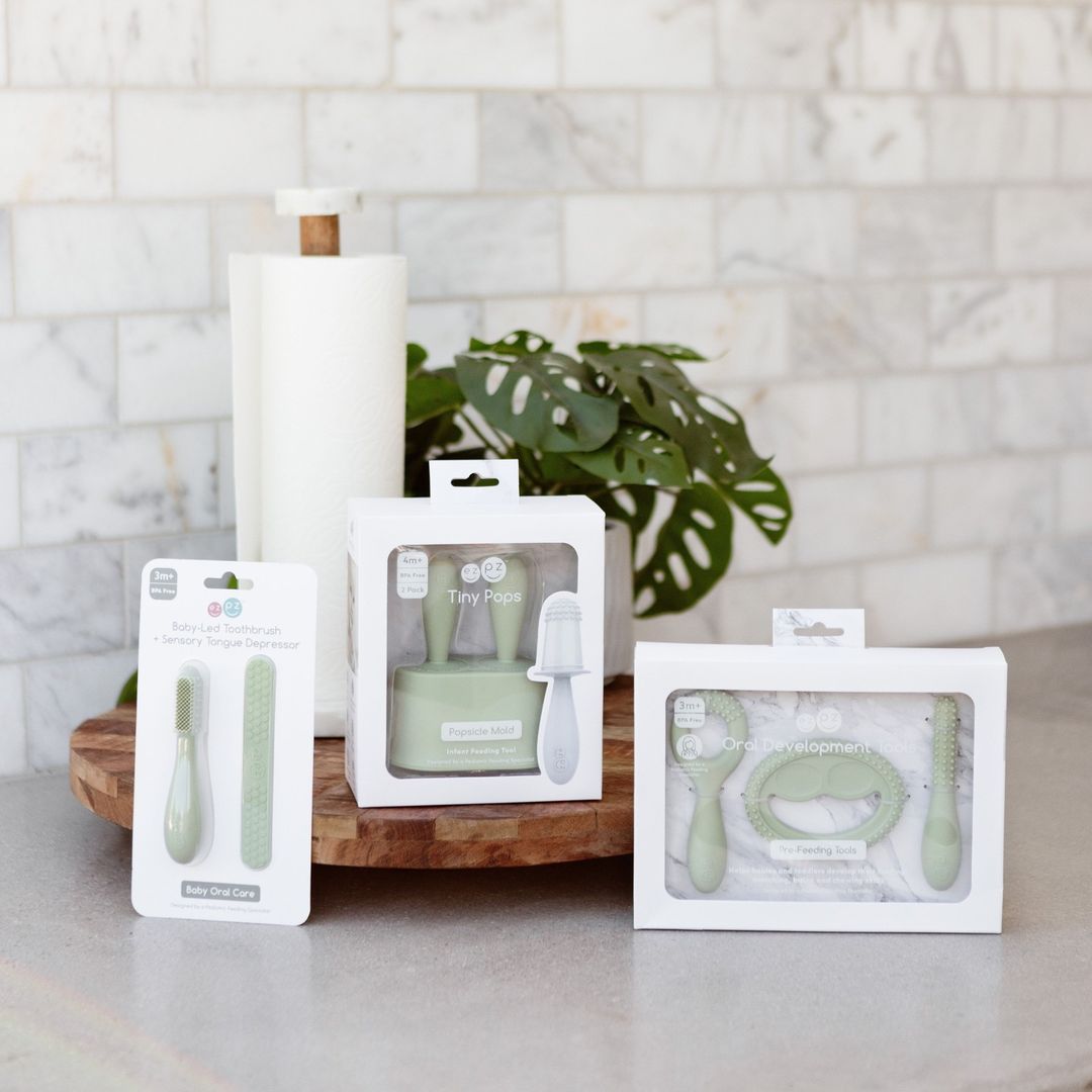 Help your little one learn to bite and chew with ezpz's Oral Development Tools. This 3-piece set aids their feeding journey at every stage.