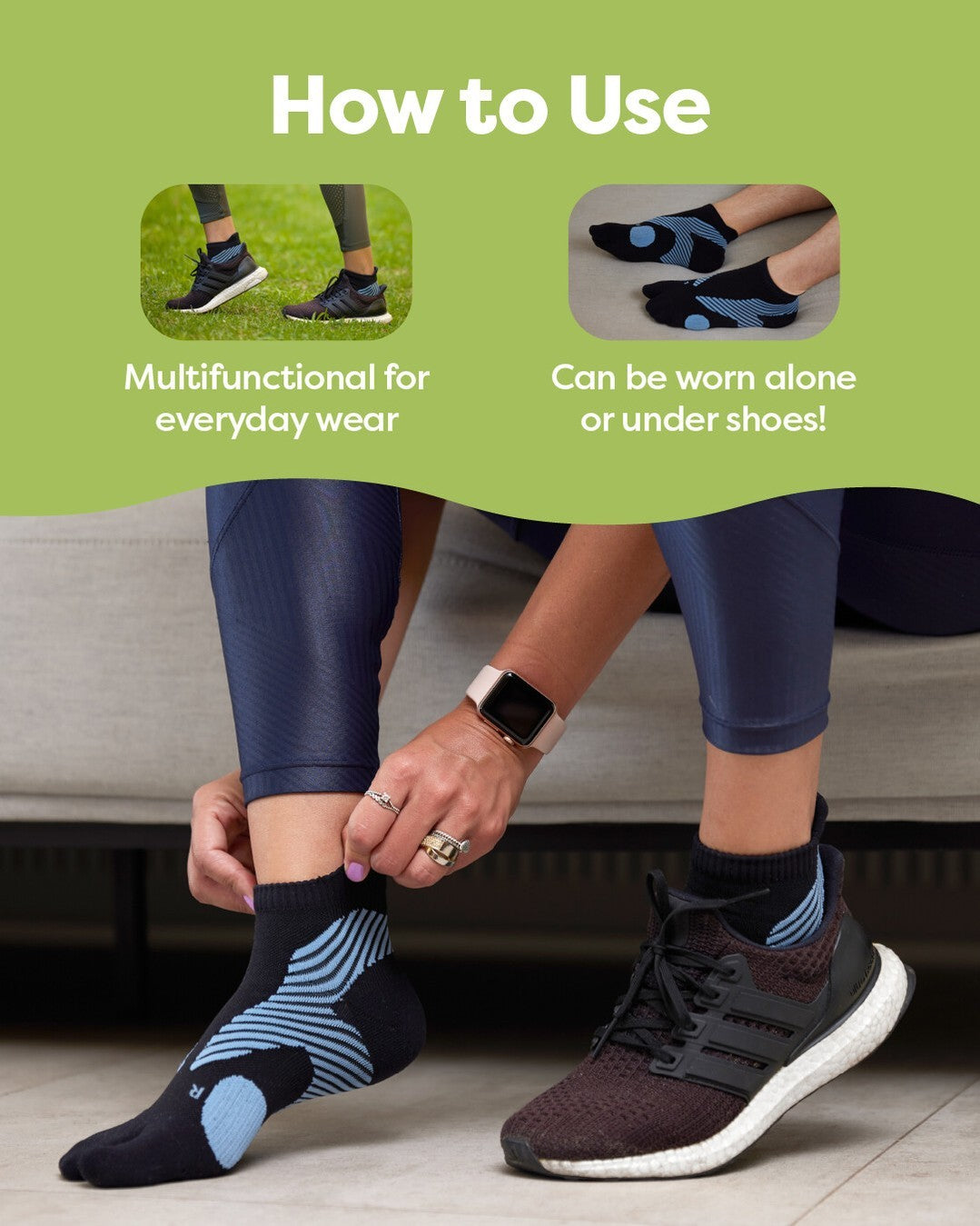 Relieve bunion discomfort with split-toe socks featuring built-in padding to reduce friction and pressure in your shoes.