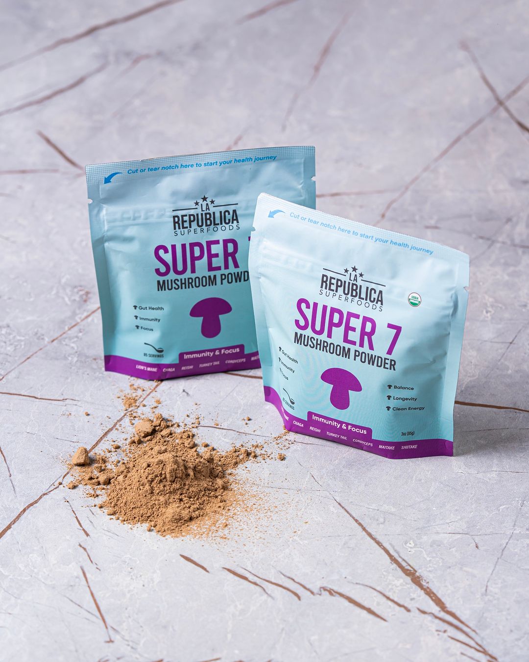Support immunity, focus, and energy with La Republica's Super 7 Mushroom Extract. This lab-tested powder blends seven revered mushrooms.