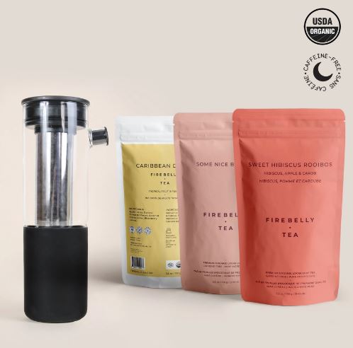 Create the perfect iced tea with this kit from Firebelly Tea. It features certified organic teas and modern steepware for a perfect brew.